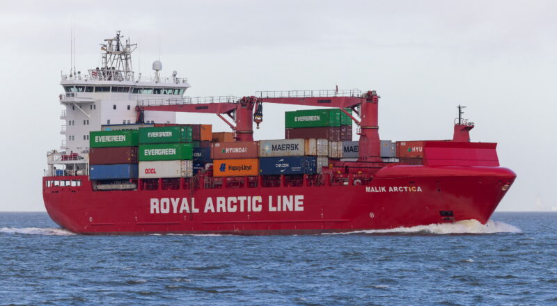Das kleine Containerschiff MALIK ARCTICA wurde 2017 in Polen für die grönländische Reederei Royal Arctic Line gebaut und ist für die Versorgung Grönlands in Fahrt.